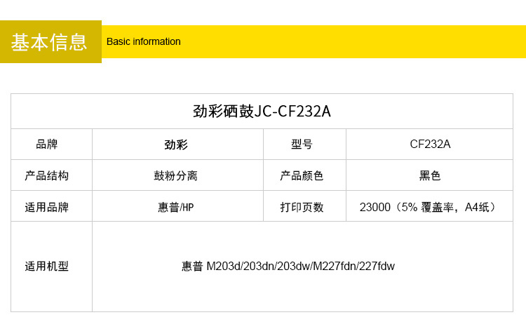 商品名称:劲彩CF232A鼓架带芯片 适用惠普 M203d/dn/dw M227d/fdn/fdw/sdn