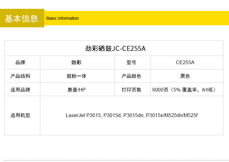 商品名称:劲彩CE255A硒鼓 适用惠普打印机 P3015 P3015d/dn/x M525dn/f