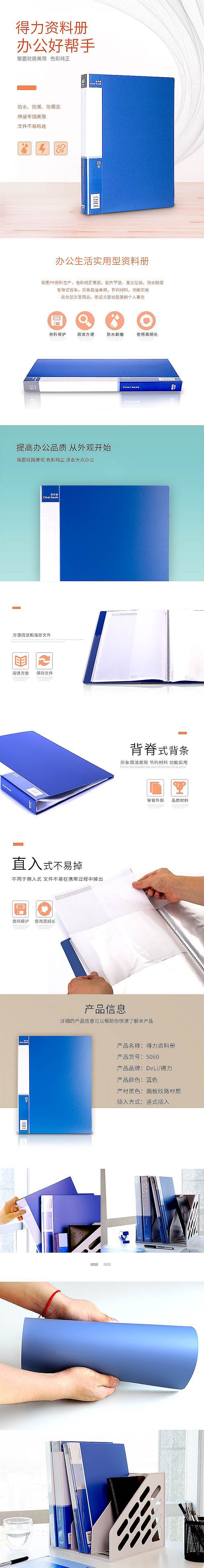 得力(deli) 60页资料册资料夹插页袋5060蓝色