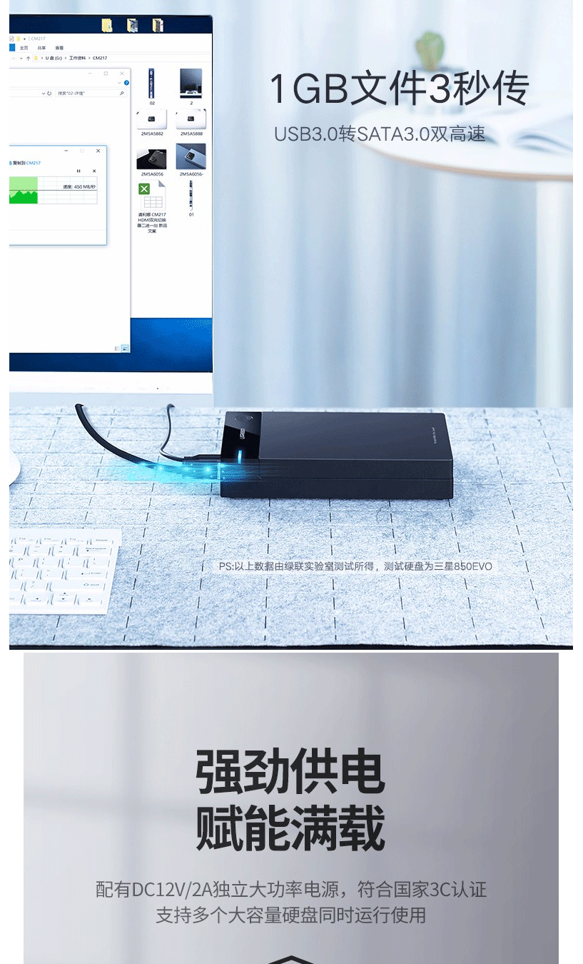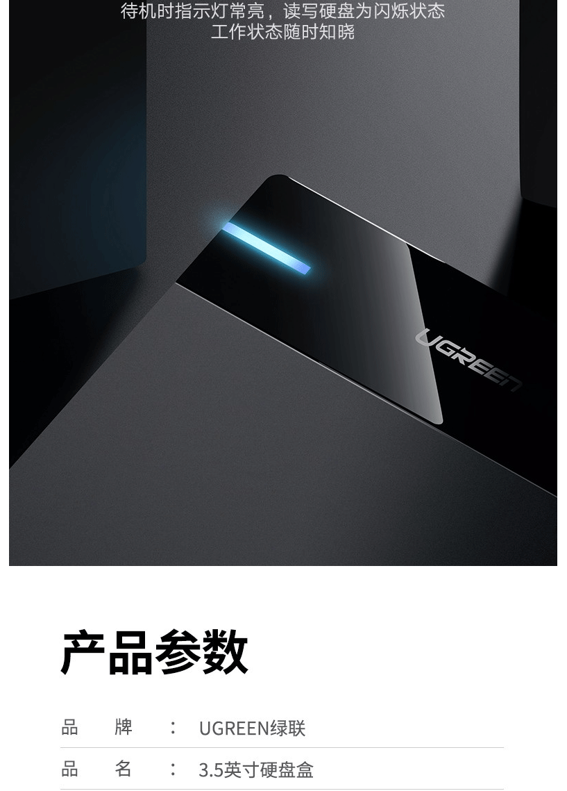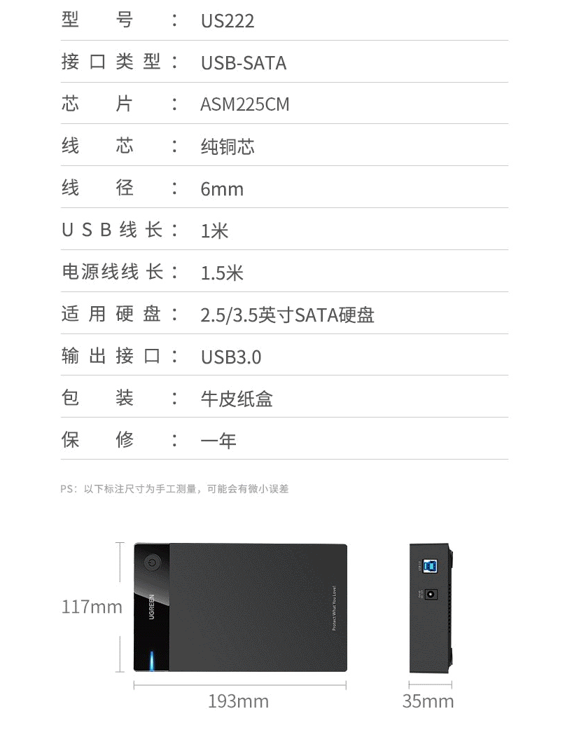商品名称:绿联 US222 移动硬盘盒3.5英寸USB3.0 USB转方口3.0