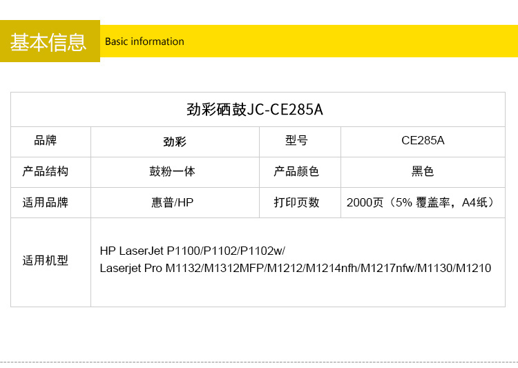 商品名称:劲彩CE285A硒鼓 适用惠普M1212 M1214nfh M1130 P1100 P1102 佳能CRG925