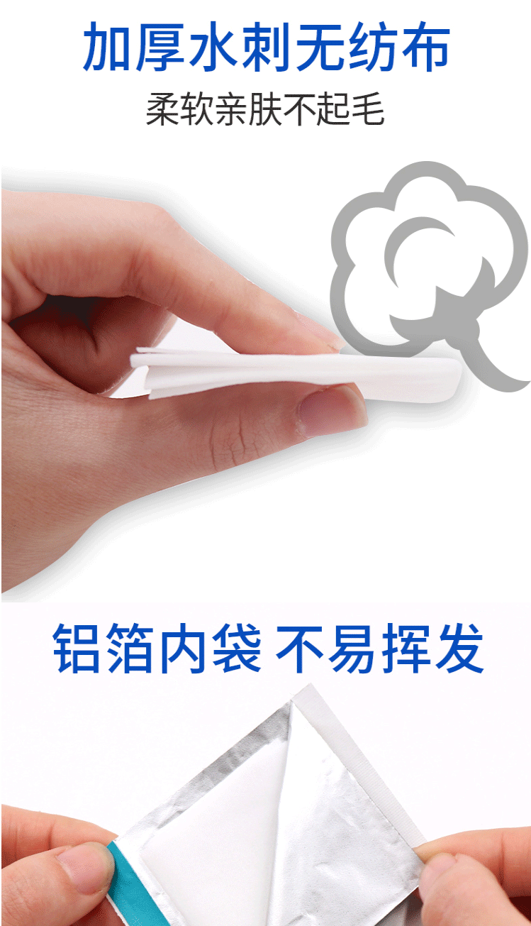 商品名称:海氏海诺 75%医用酒精棉片 大尺寸消毒湿巾50片装12cm*12cm 消毒棉片