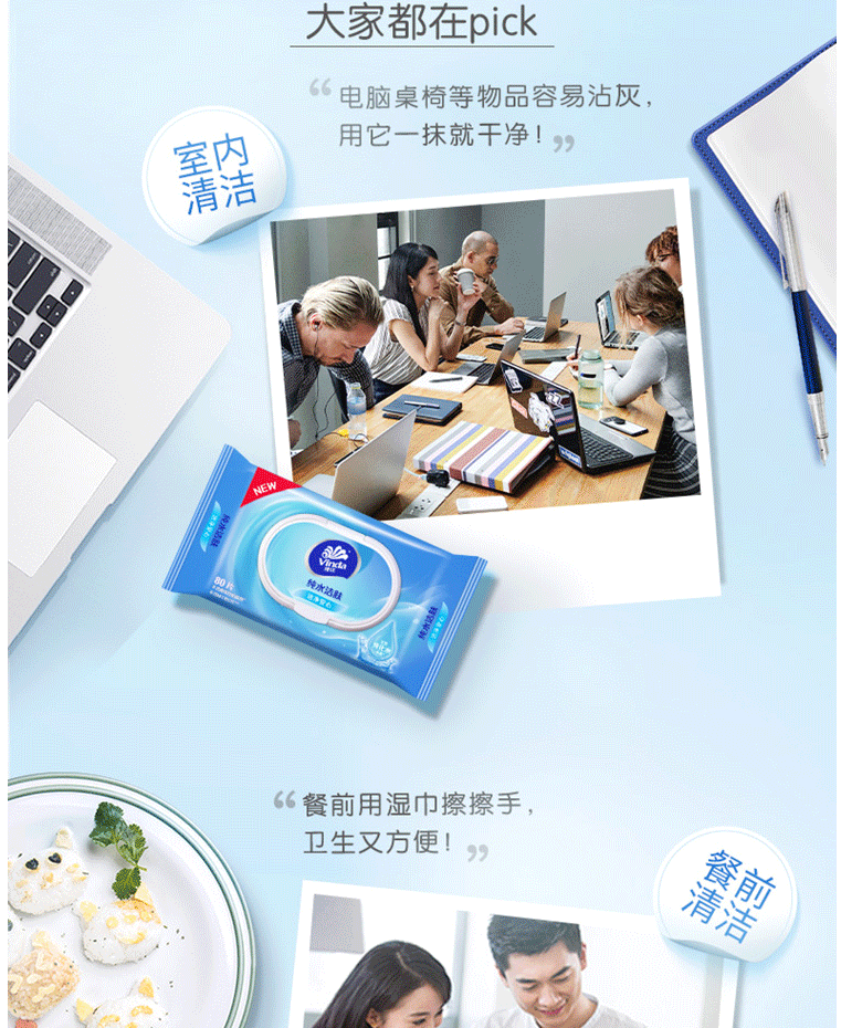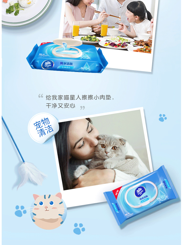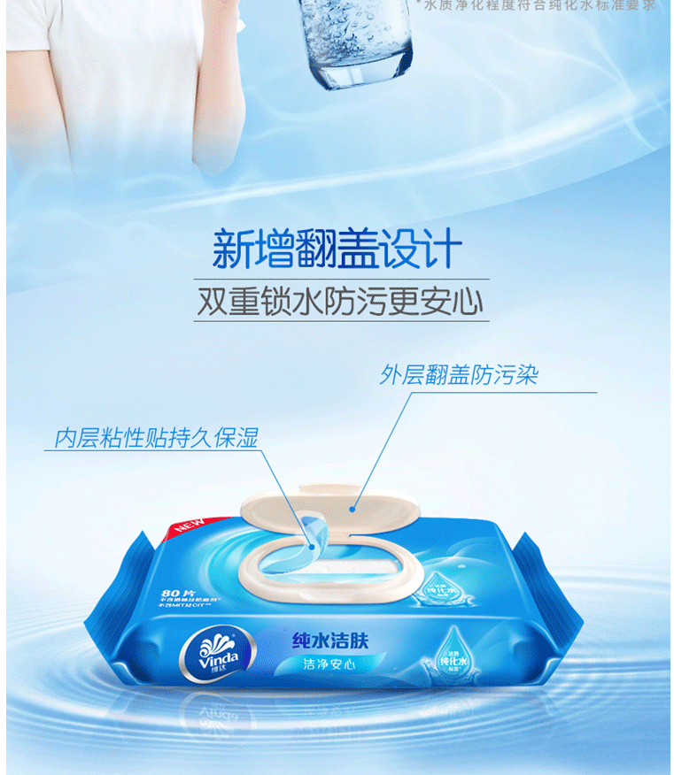 维达湿巾纸巾 湿纸巾 洁肤湿巾80片/包 抽卫式湿巾