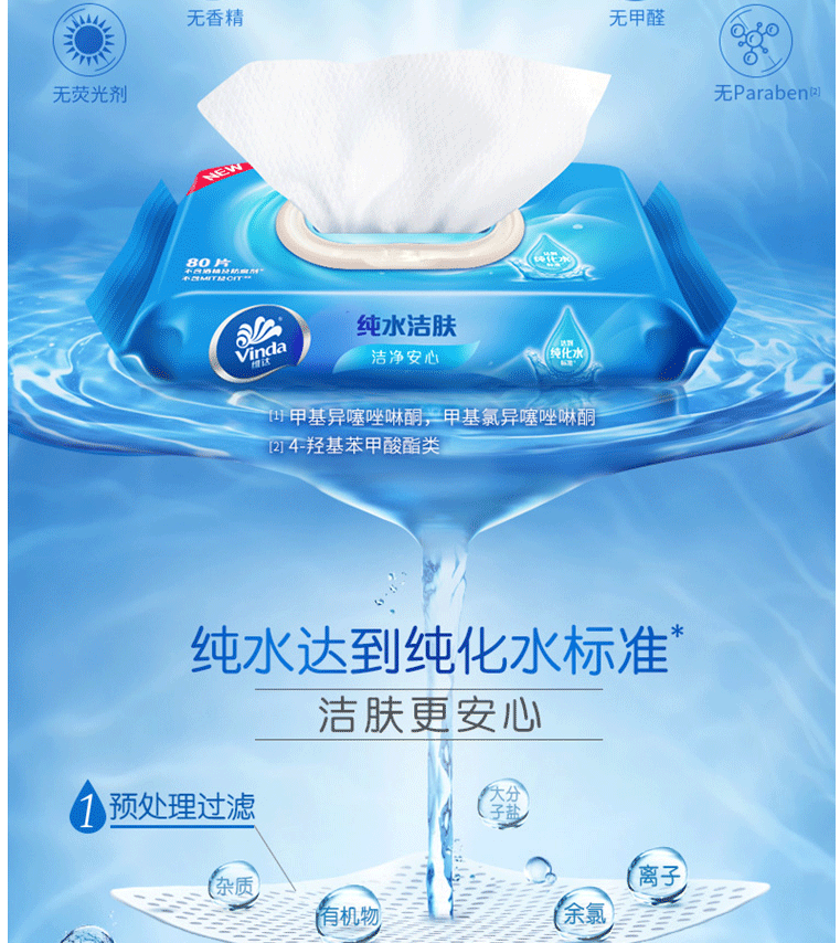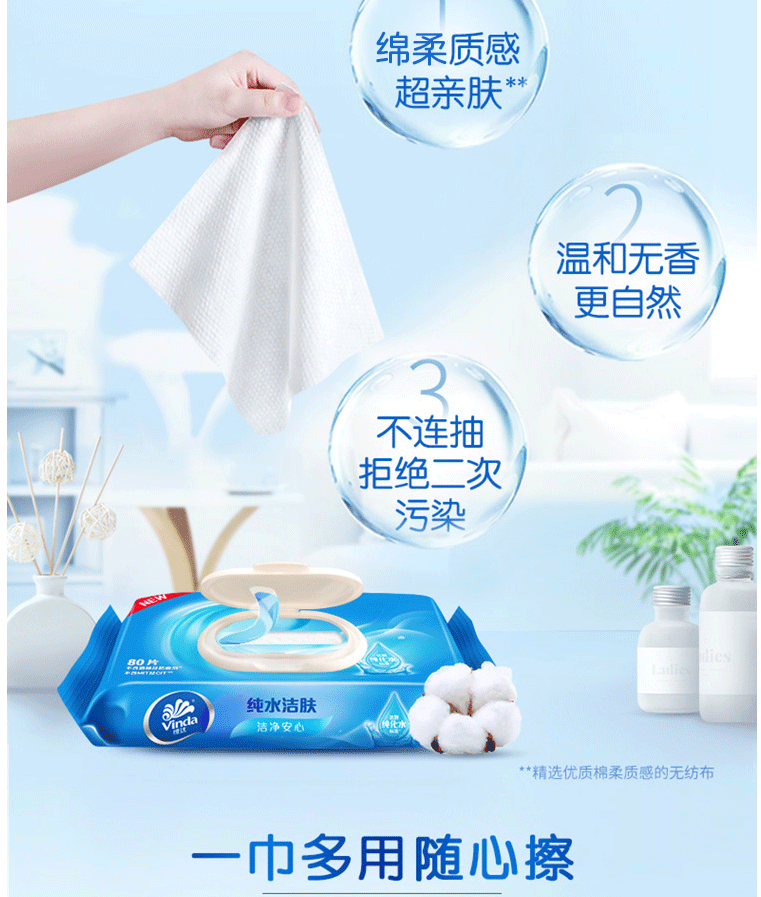 商品名称:维达湿巾纸巾 湿纸巾 洁肤湿巾80片/包 抽卫式湿巾