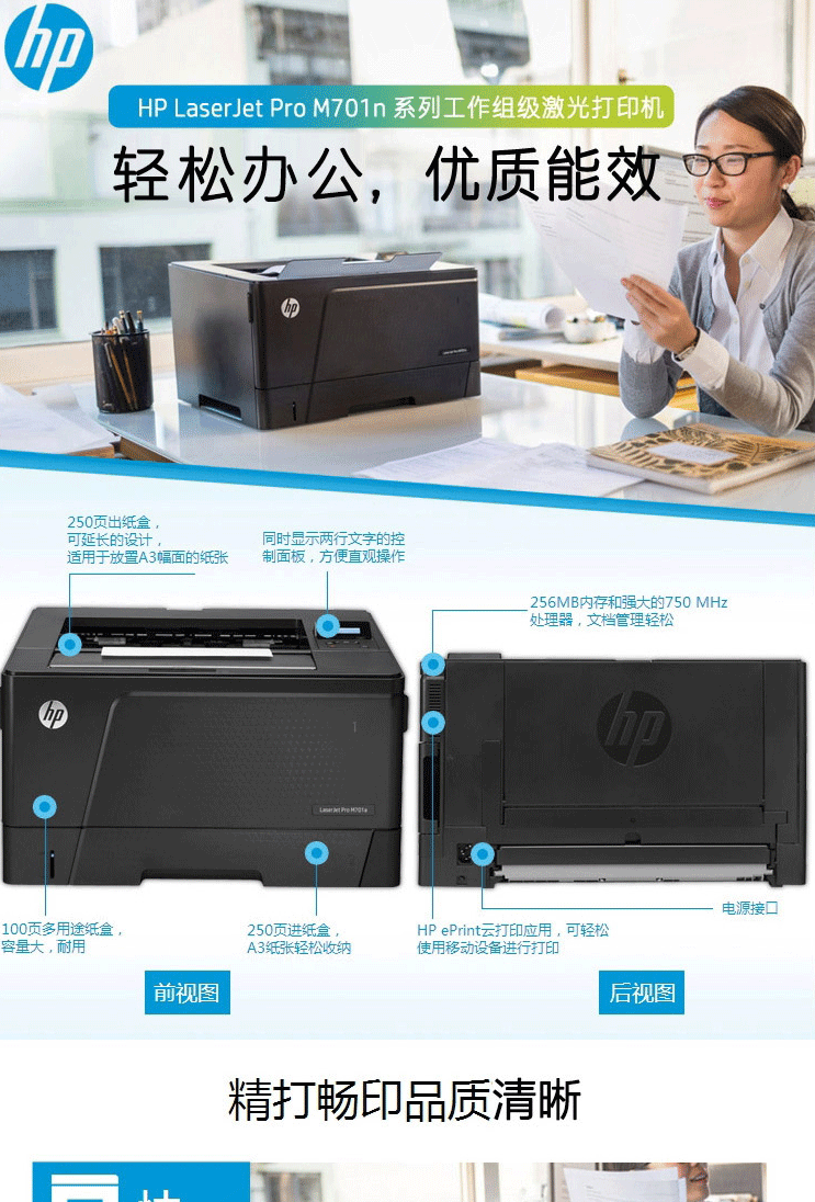 商品名称:惠普(HP)LaserJet Pro M701n A3黑白激光打印机