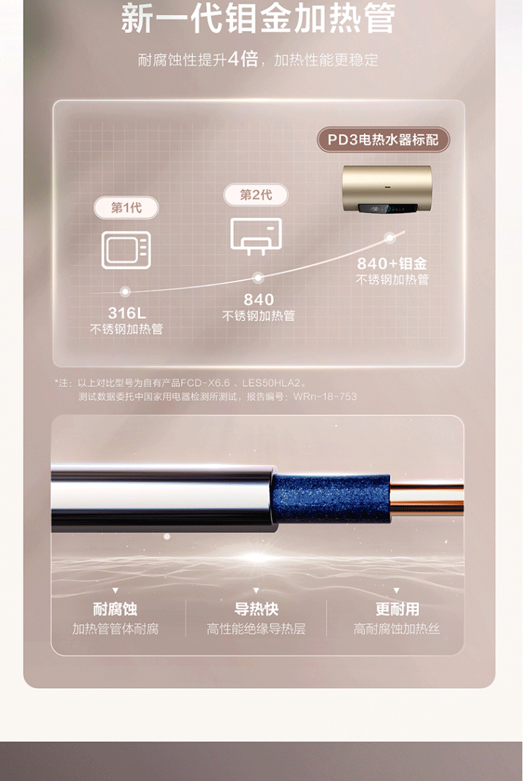 海尔(Haier)安心浴60升电热水器 2200W速热金刚无缝胆水质监测 EC6001-PD3(U1)