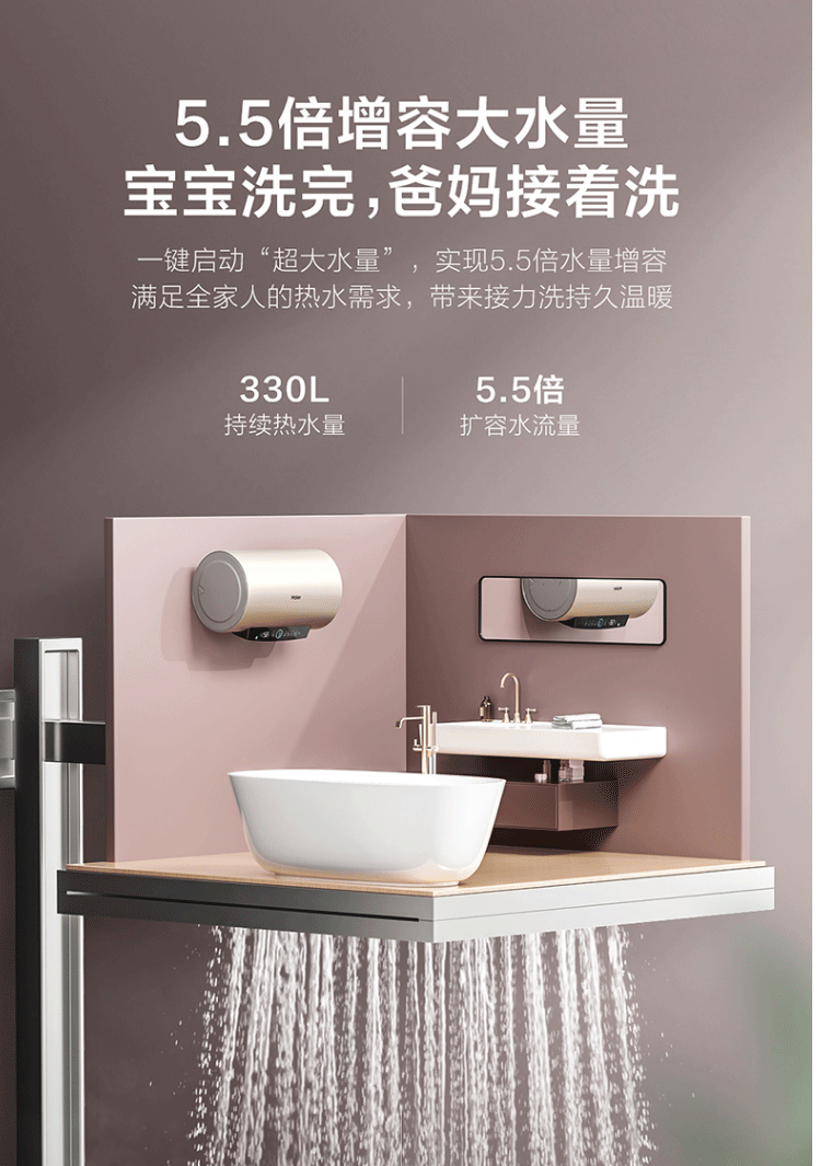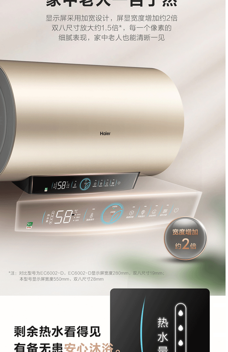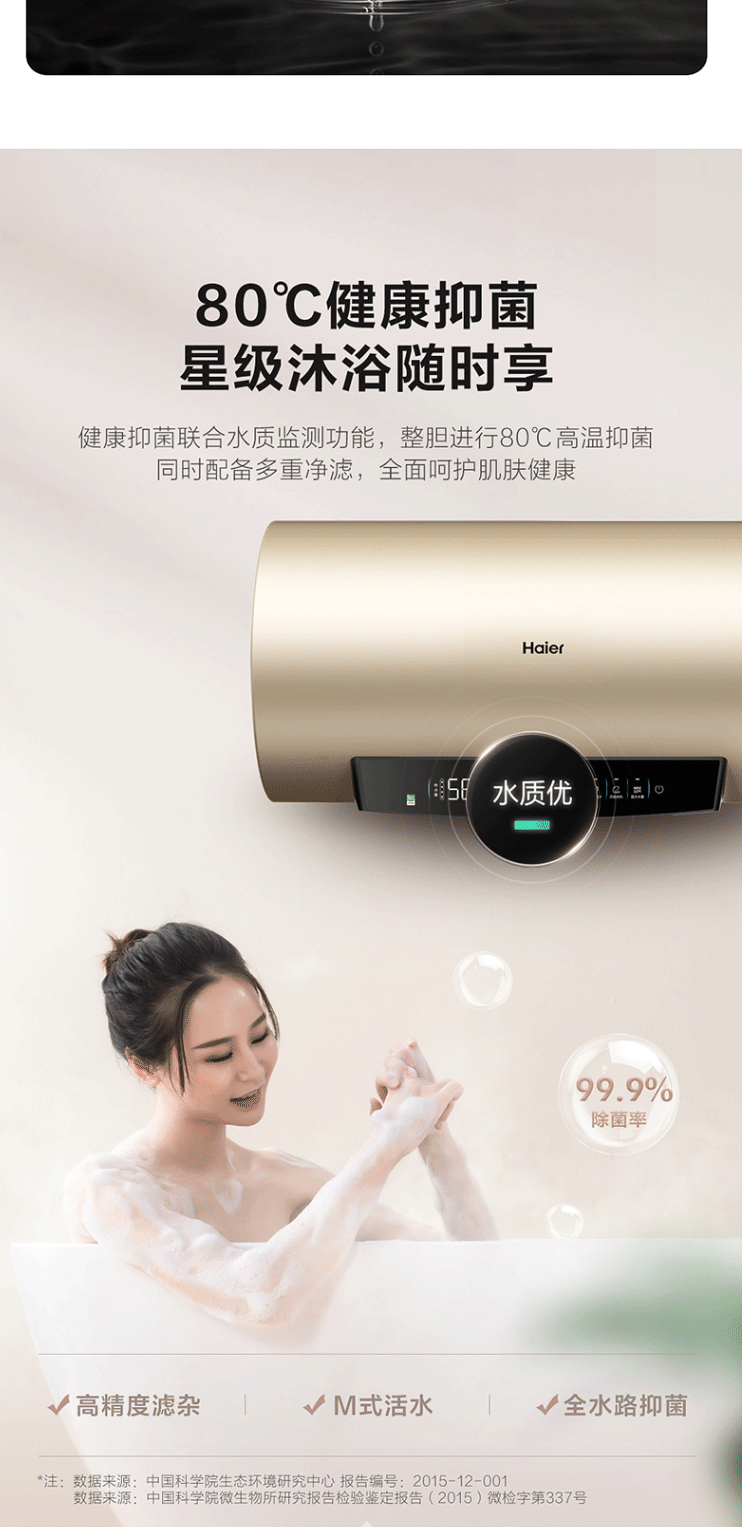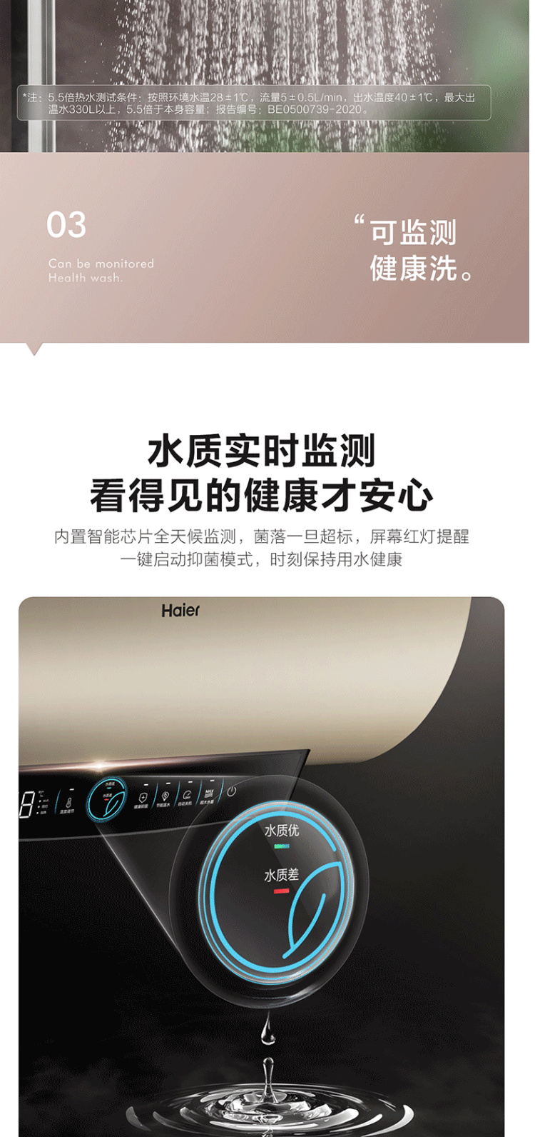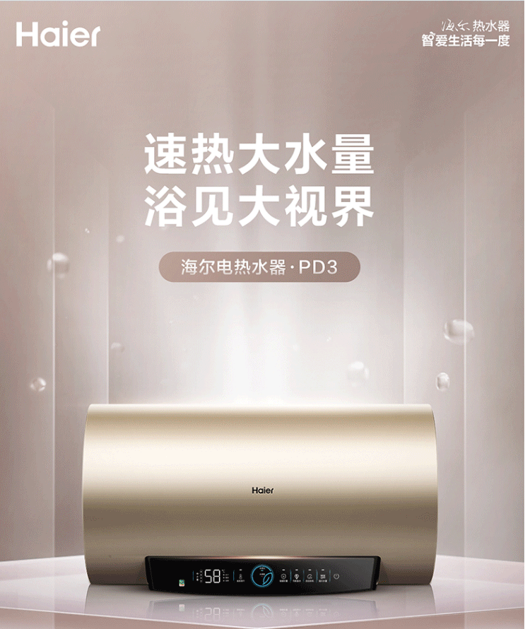 商品名称:海尔(Haier)安心浴60升电热水器 2200W速热金刚无缝胆水质监测 EC6001-PD3(U1)