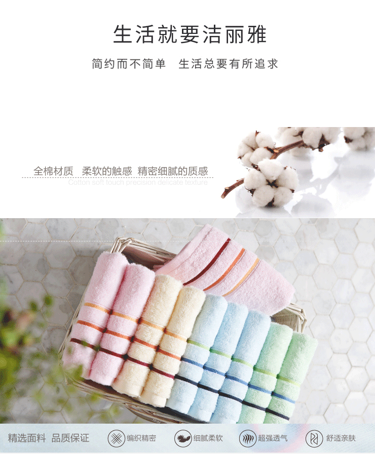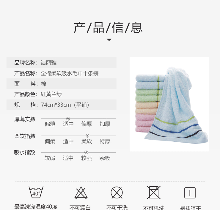 商品名称:洁丽雅(Grace)毛巾 纯棉素色洗脸巾 十条装 混色 74*33cm