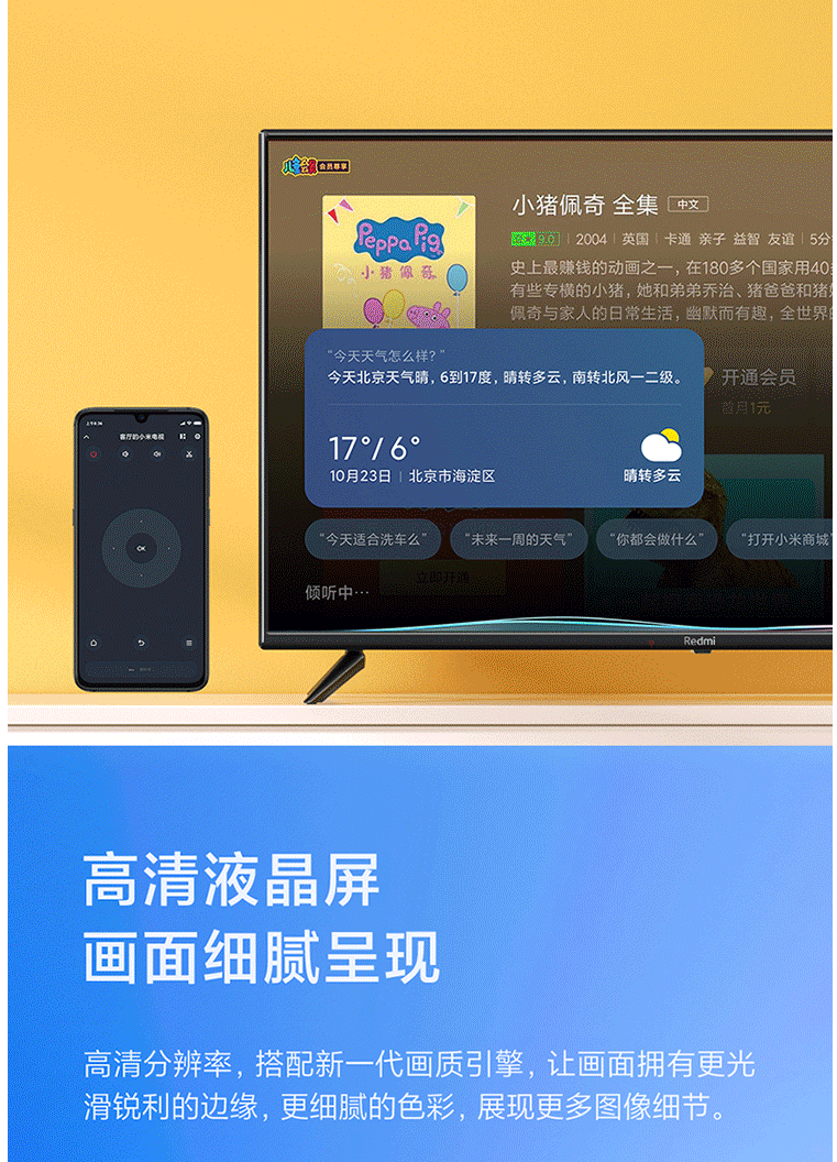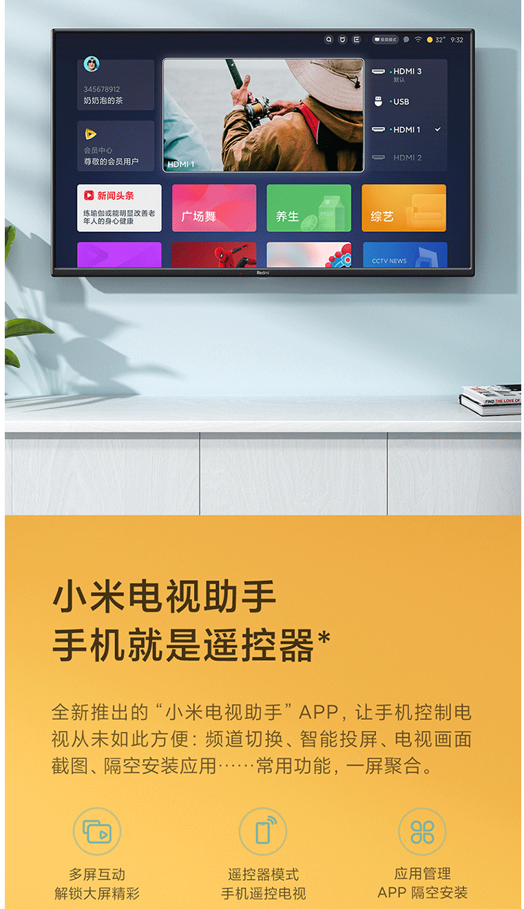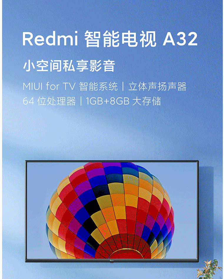 商品名称:小米电视 A32 32英寸 立体声扬声器 64位处理器 L32R6-A 红米Redmi 电视