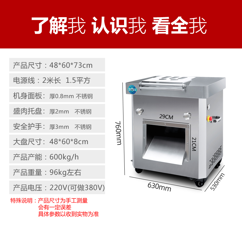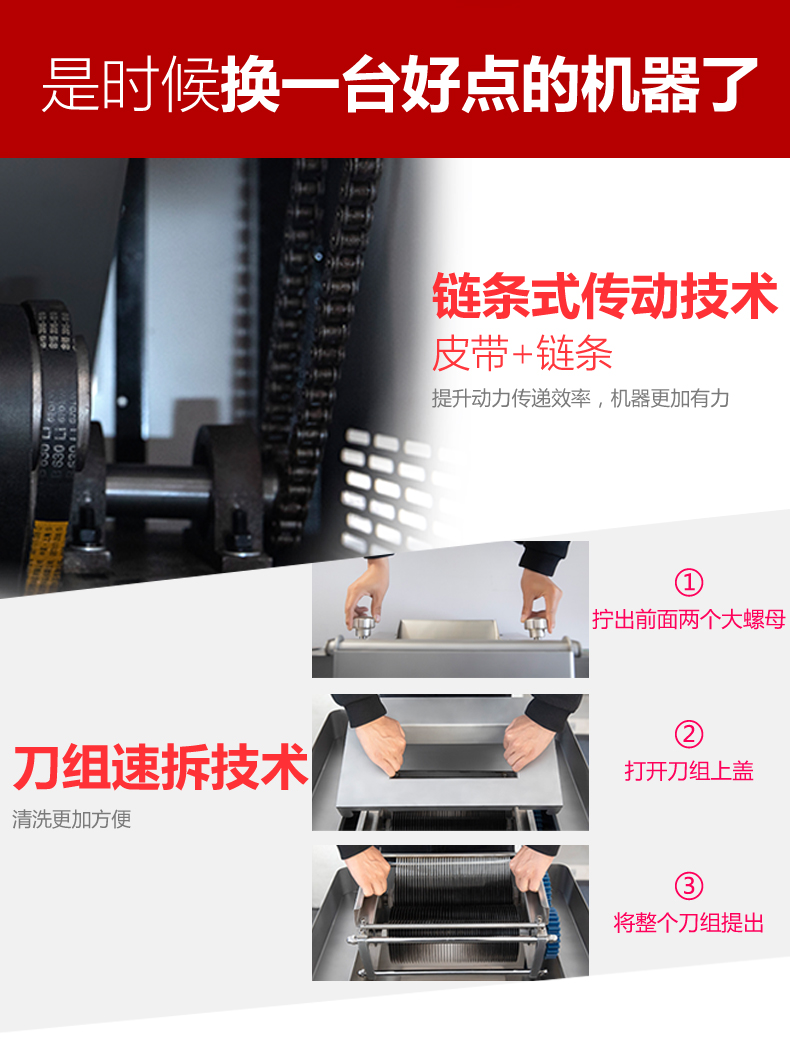 商品名称:大型商用多功能电动切肉机切片切丝切丁铁链条带动全自动切整鱼块 3000W国标电机