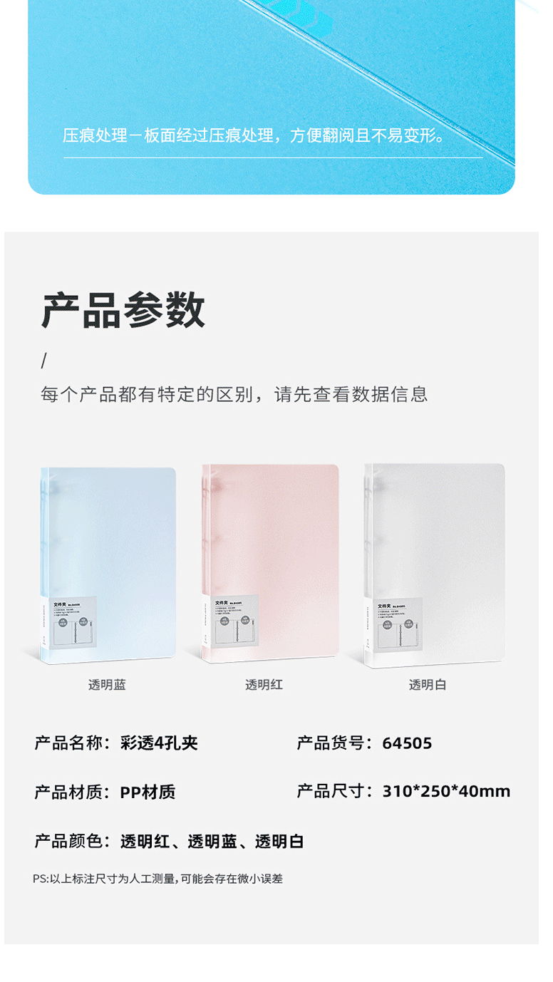 商品名称:得力(deli)64505 4孔PP文件夹 试卷资料夹 诗朗诵签约夹板 粉红