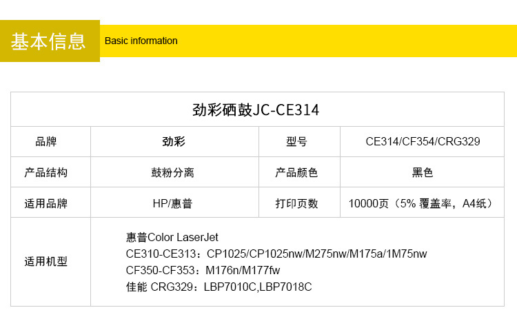 商品名称:劲彩CE314A/CF354A鼓架 适用惠普 CP1025 M175a 佳能CRG329 四色通用成像鼓