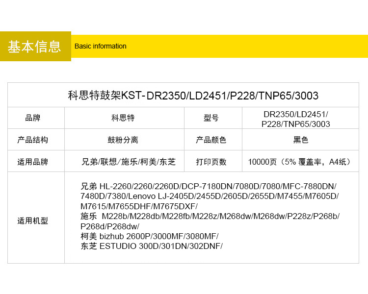 商品名称:科思特DR2350鼓架 适用兄弟2260 联想LD2451 施乐P228 柯美TNP65 东芝3003 专业版