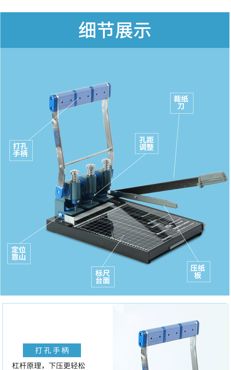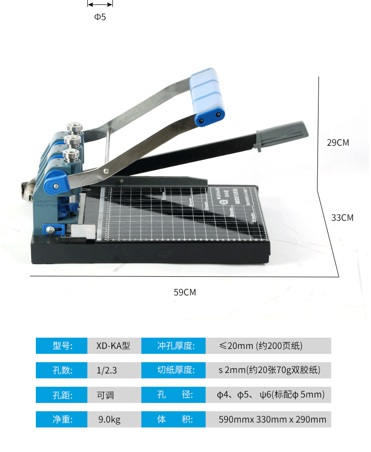 商品名称:现代XD-KA 三孔打孔机 打孔器 切纸打孔两用装订机 刀头标配5MM