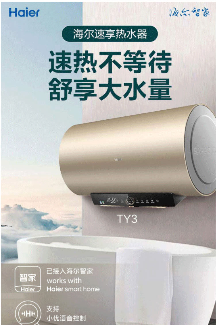 商品名称:海尔(Haier)电热水器 80L 3D速热WIFI智控家用热水器 ES80H-TY3(5)U1金色