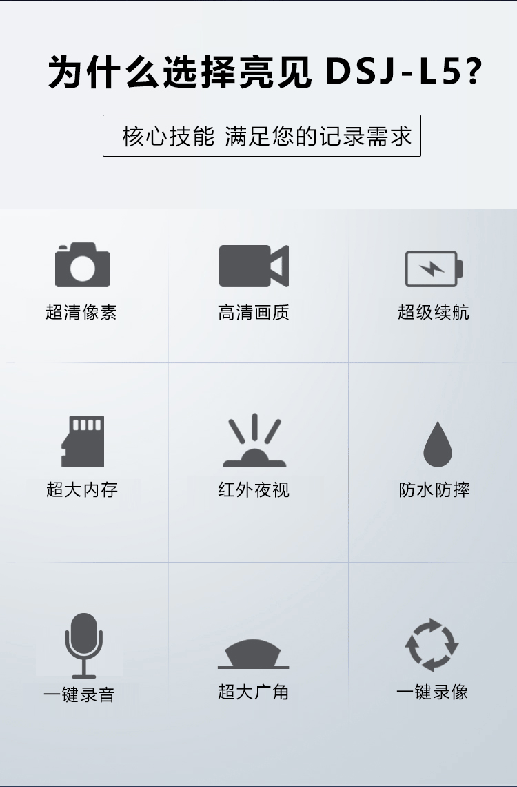 商品名称:亮见DSJ-L5执法记录仪高清广角镜头红外夜视现场回放功能 128G