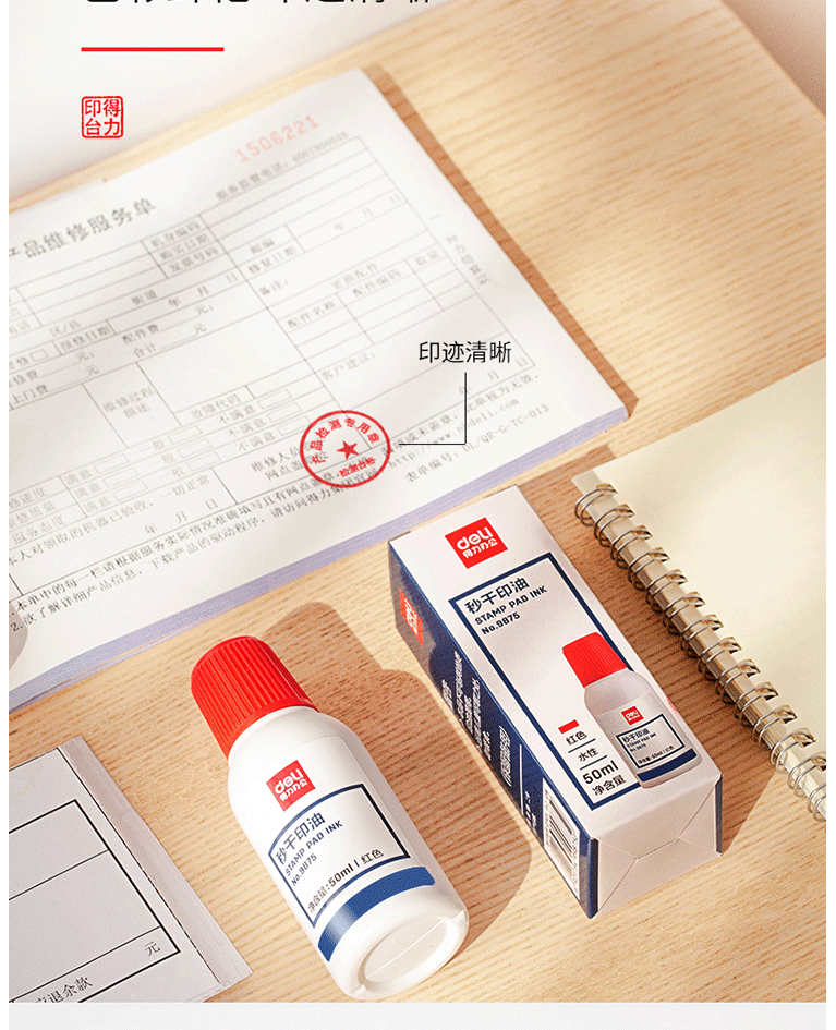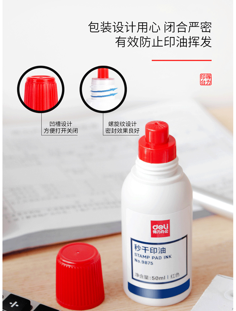 得力(deli)50ml秒干印油 财务办公印章专用 办公用品 红色9875