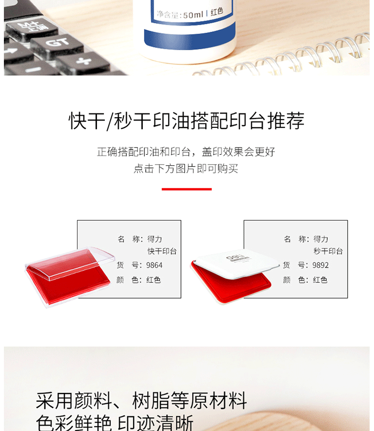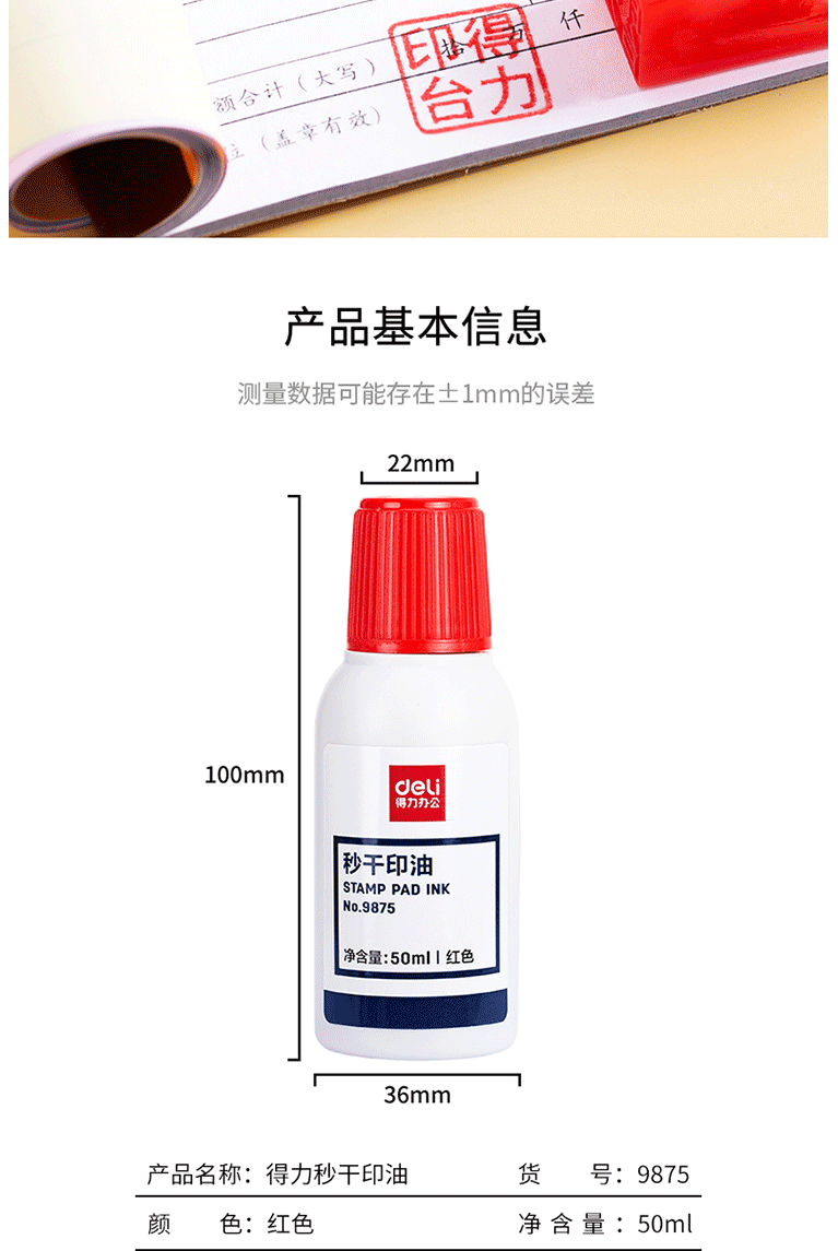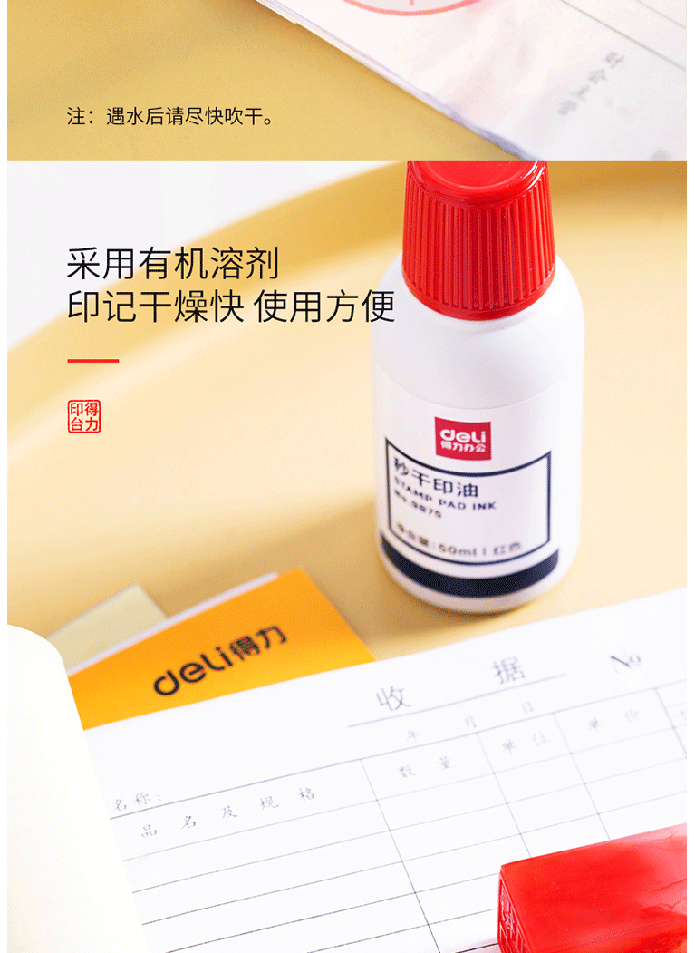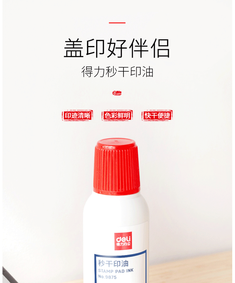 商品名称:得力(deli)50ml秒干印油 财务办公印章专用 办公用品 红色9875