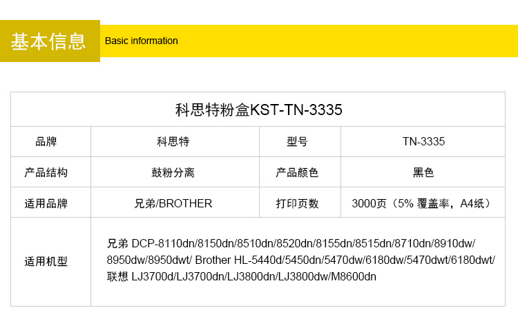 商品名称:科思特TN3335粉盒 适用兄弟 DCP8150 HL5440 MFC8520dn 联想LT4637 专业版