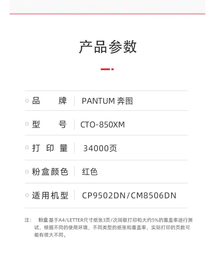 商品名称:奔图(PANTUM)CTO-850XM红色粉盒 适用奔图CTO-850/CM8505DN/CM9505DN/CP9502DN/CM8506DN打印机墨盒