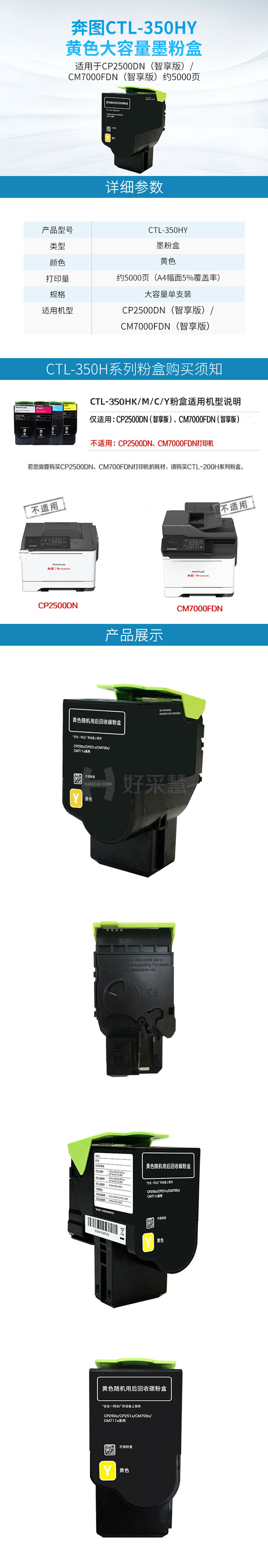商品名称:奔图(PANTUM)CTL-350HY 黄色粉盒 适用于(CP2510DN/CM7115DN/CP2500DN智享版/CM7000FDN智享版)