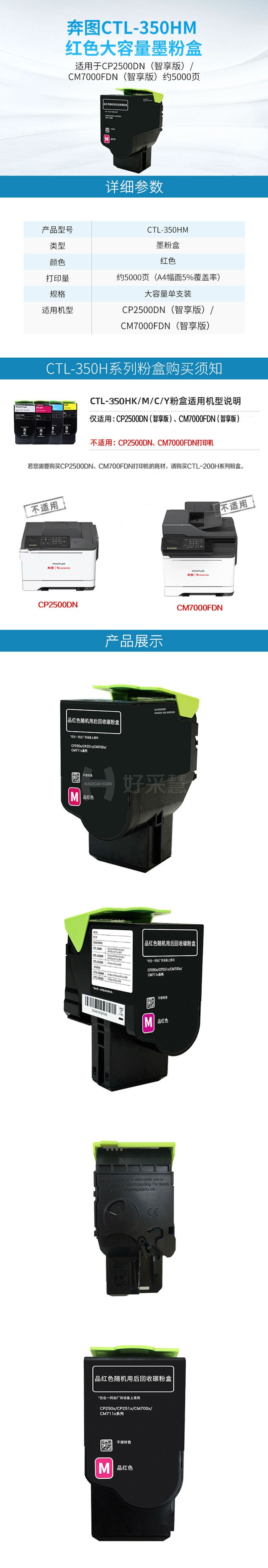 商品名称:奔图(PANTUM)CTL-350HM 红色粉盒 适用于(CP2510DN/CM7115DN/CP2500DN智享版/CM7000FDN智享版)
