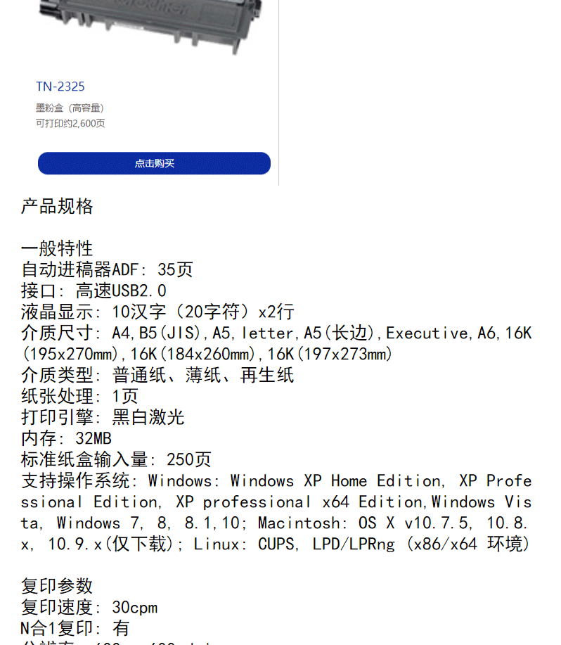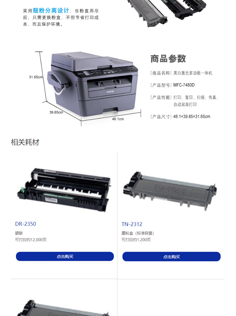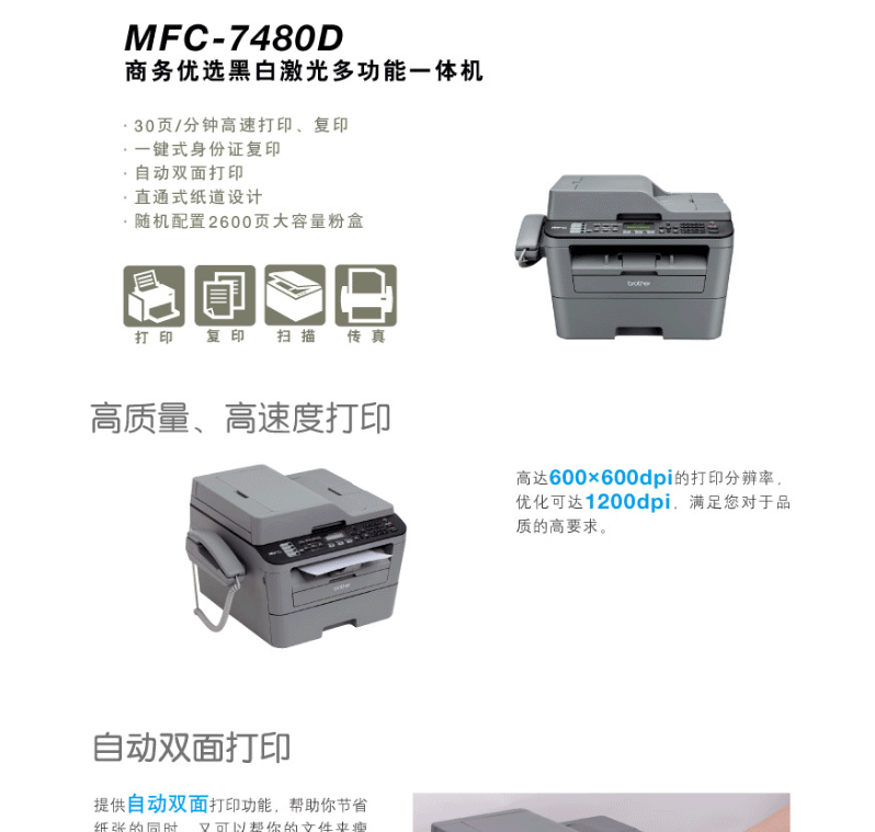 商品名称:兄弟(brother)MFC-7480D 黑白激光多功能一体机(打印、复印、扫描、传真、自动双面打印)