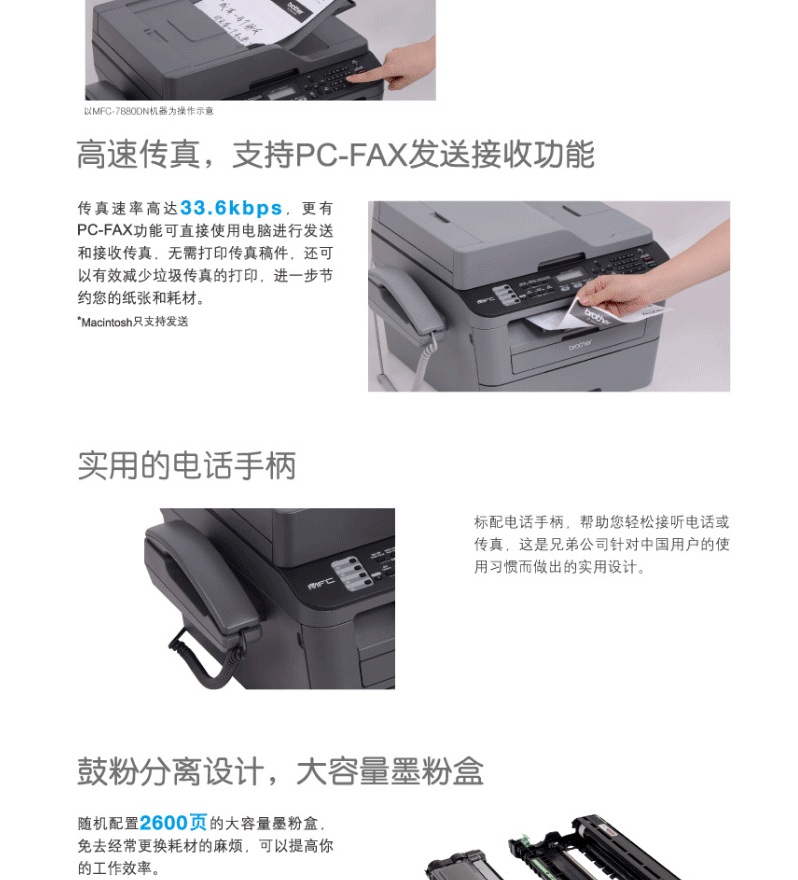 兄弟(brother)MFC-7480D 黑白激光多功能一体机(打印、复印、扫描、传真、自动双面打印)