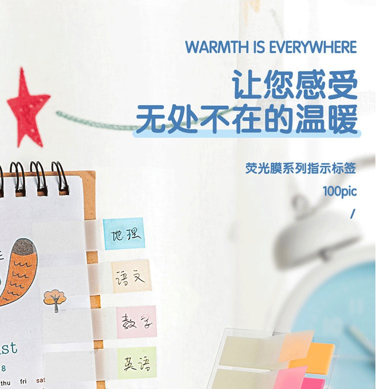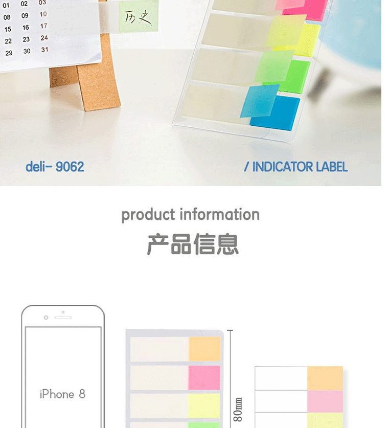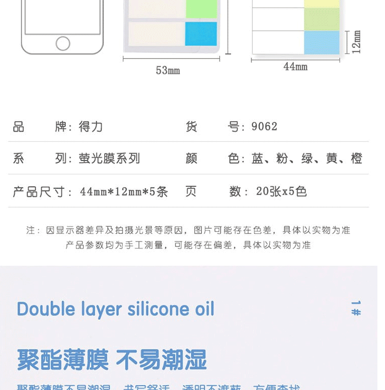商品名称:得力(deli) 彩色便签纸便利贴 5色荧光膜指示标贴记事贴 分类标签贴 9062