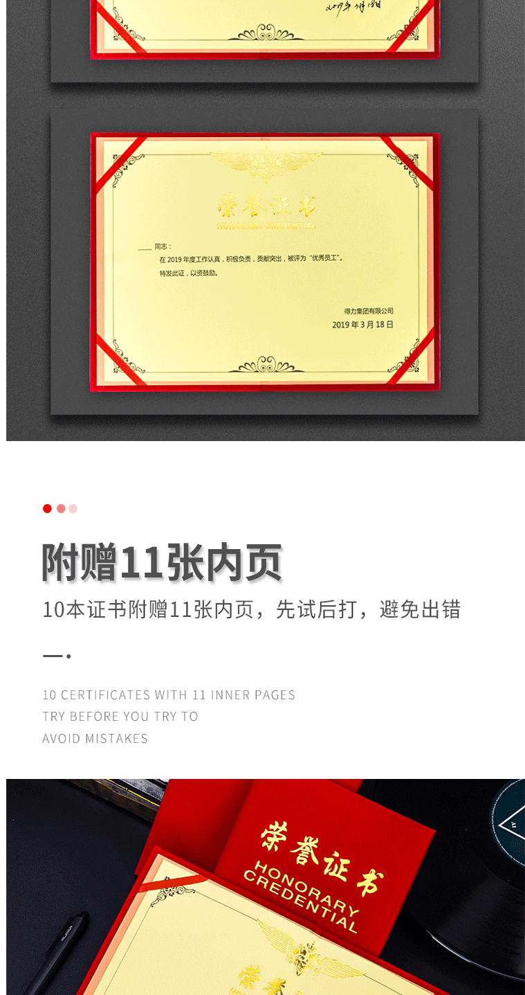 得力(deli)12K绒面荣誉证书附赠内芯(210*145mm)10本装 50705