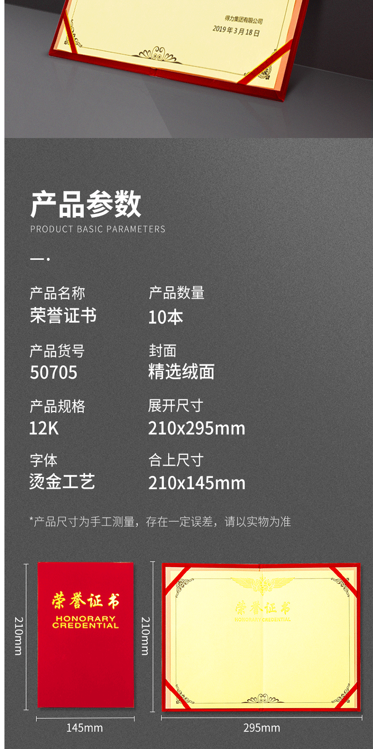 商品名称:得力(deli)12K绒面荣誉证书附赠内芯(210*145mm)10本装 50705