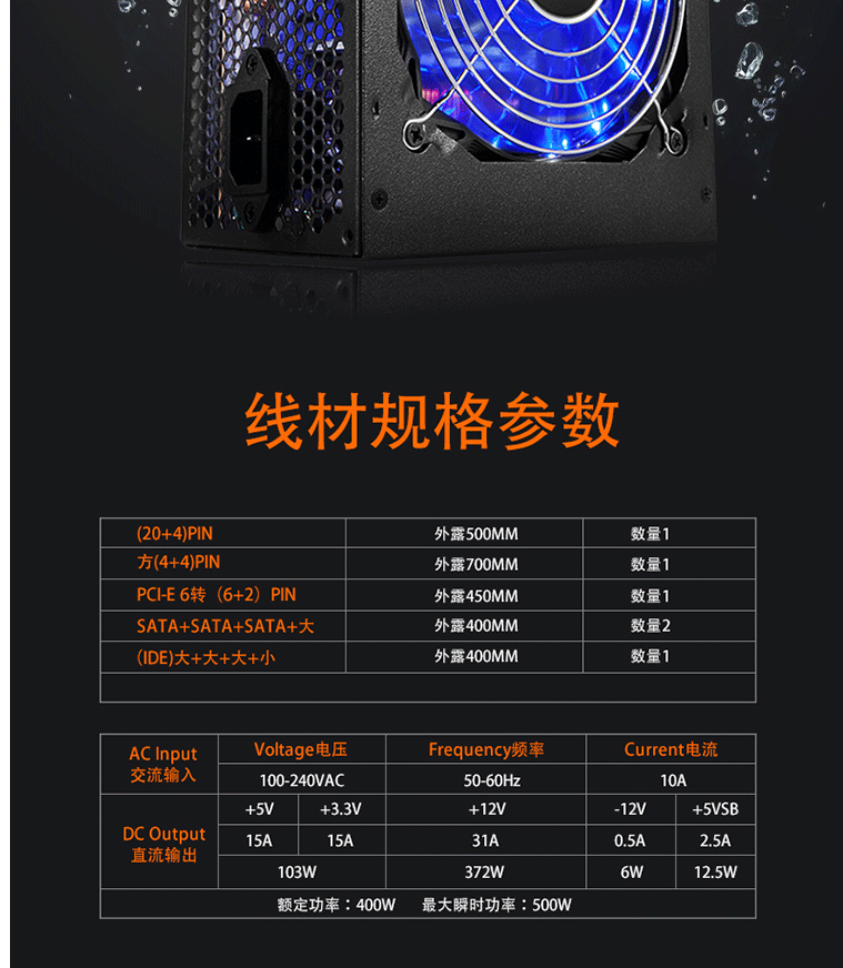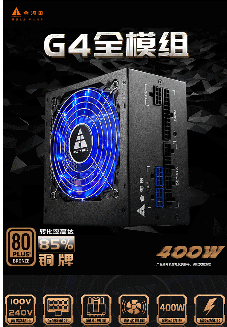 商品名称:金河田(Golden field)额定400W G4全模组电脑电源