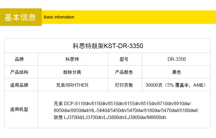 商品名称:科思特DR3350鼓架 适用兄弟 DCP8950 HL5470dw HL6180 联想LD4637 专业版