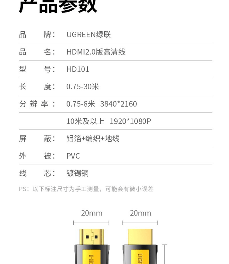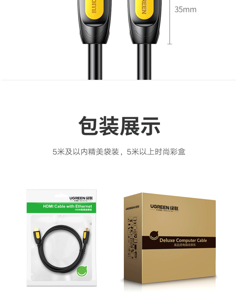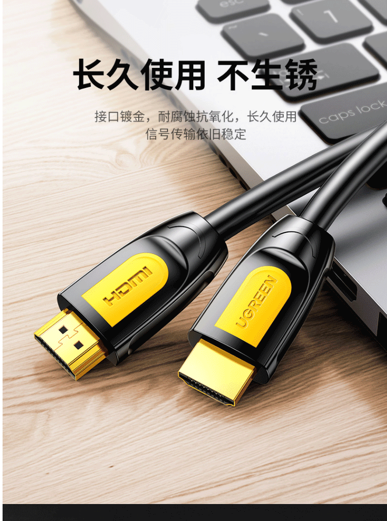 商品名称:绿联HDMI线 长线工程级 4K数字高清线3D视频线 黄黑头 2米 10129