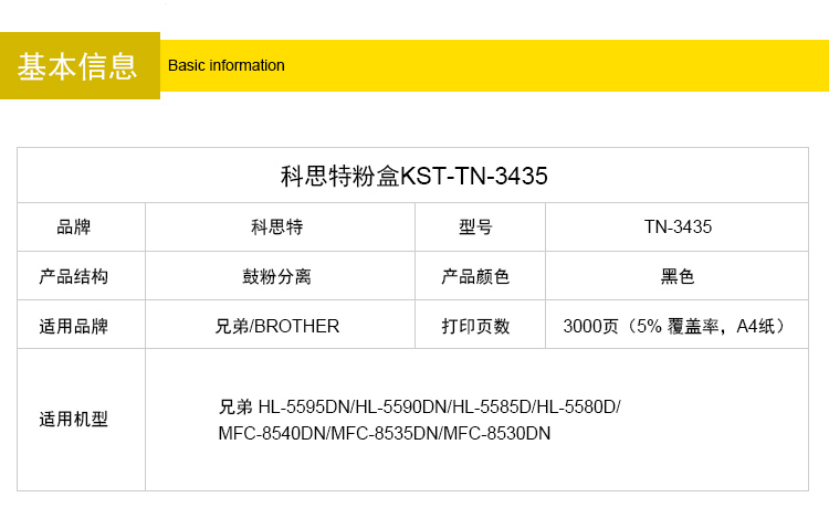 商品名称:科思特TN3435粉盒 适用兄弟 HL5595 5590 5585 5580 MFC8540DN 专业版
