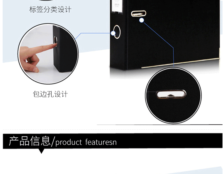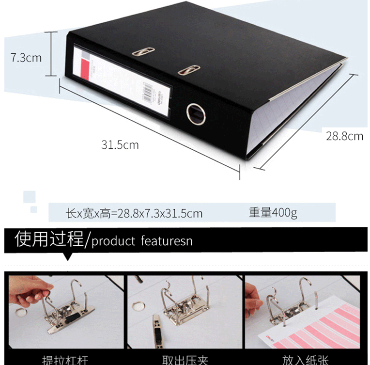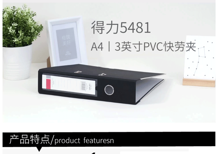 商品名称:得力(deli) A4带孔文件夹 快劳夹 5481黑色