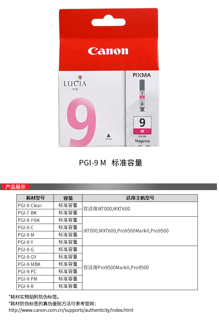 商品名称:佳能(Canon)PGI-9M 品红墨盒(适用iX7000/MX7600/Pro9500MarkII/Pro9500)
