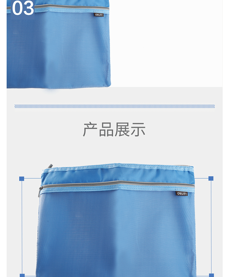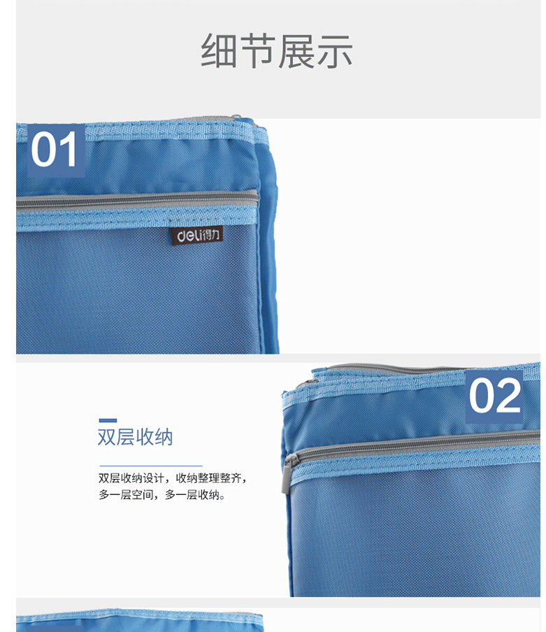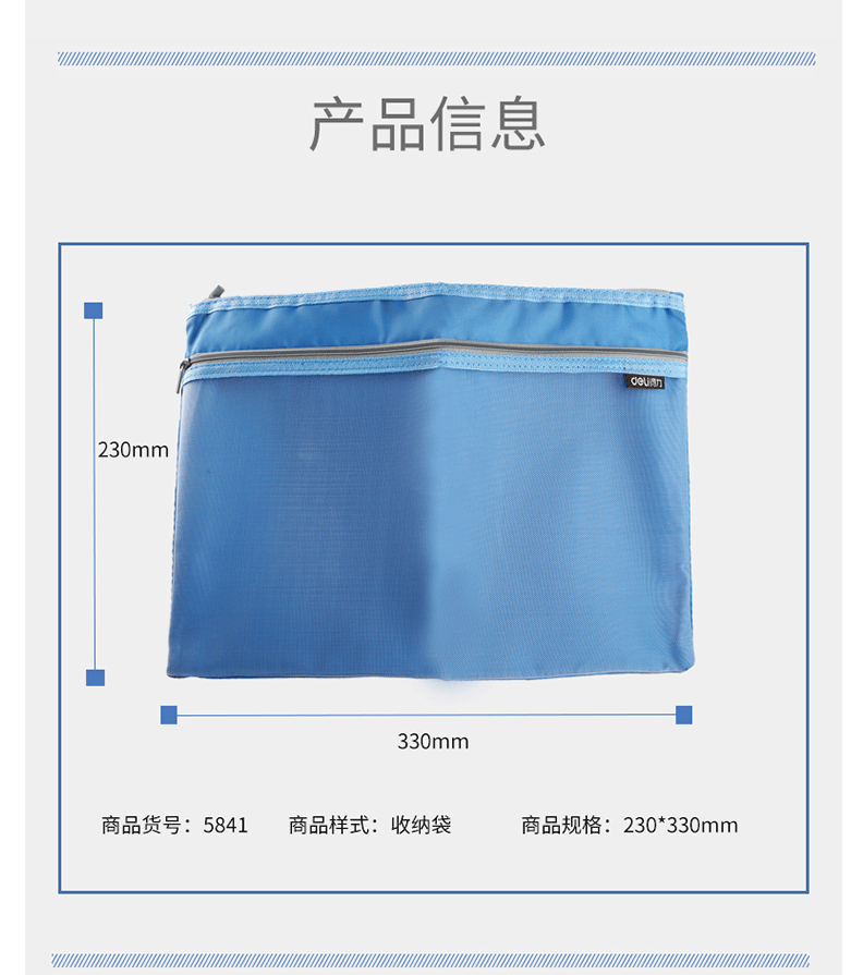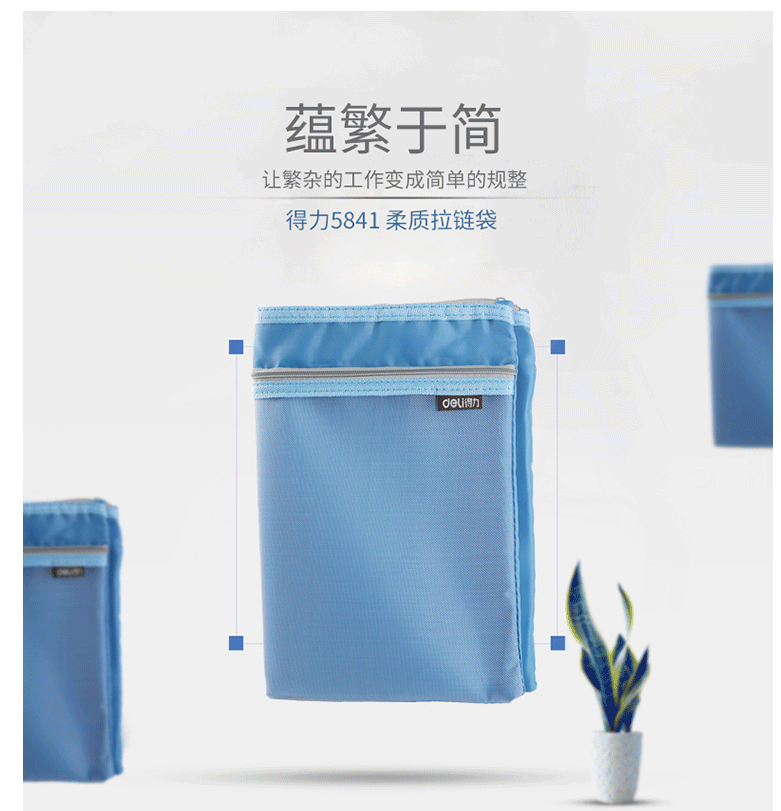 商品名称:得力(deli)A4透气双层拉链文件袋 布质收纳袋 5841 颜色随机
