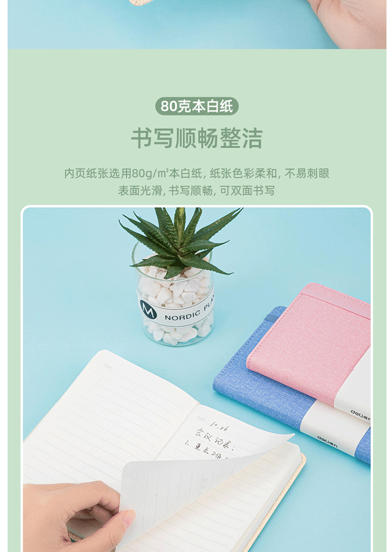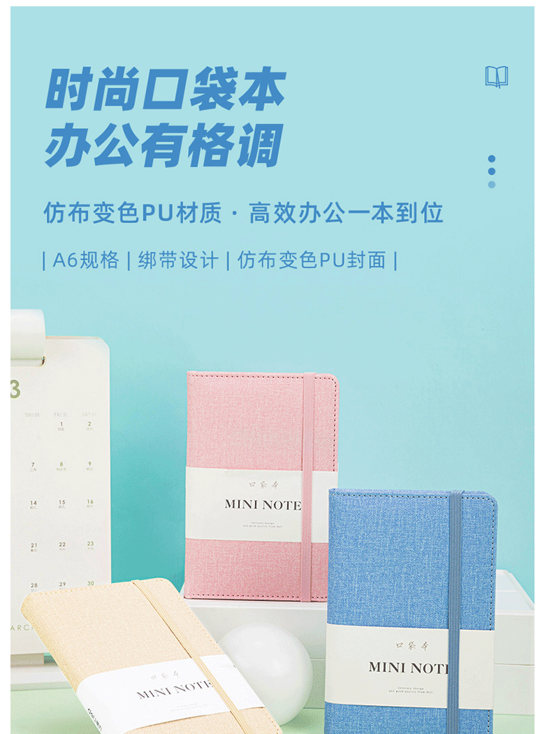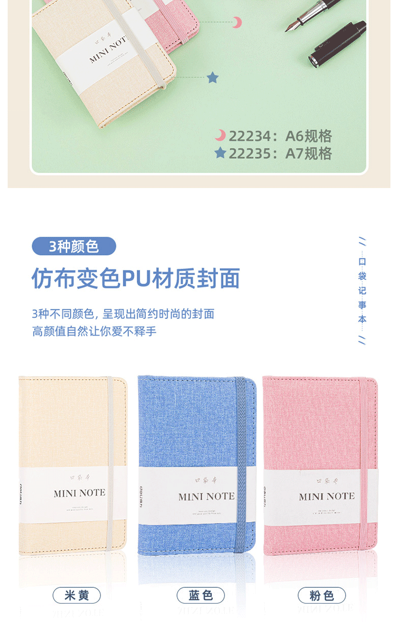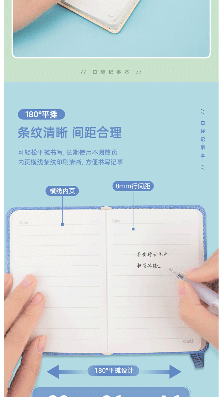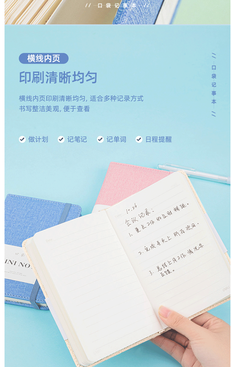 商品名称:得力(deli) A6/96张便携口袋本 笔记本 手账本 22234浅蓝