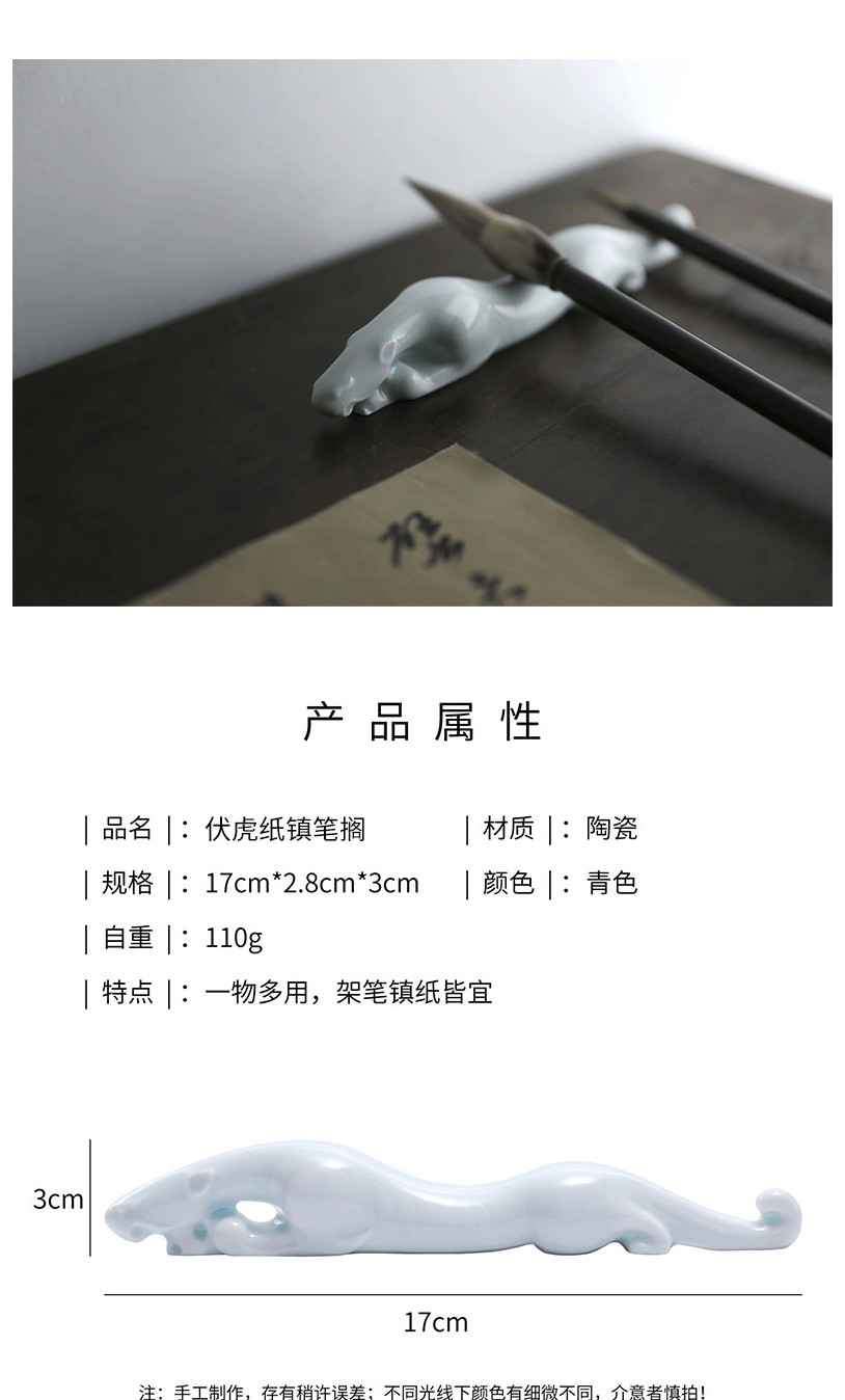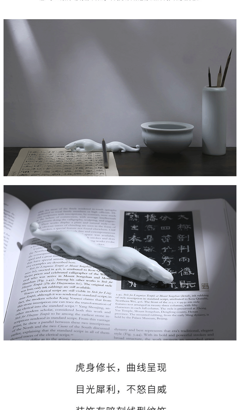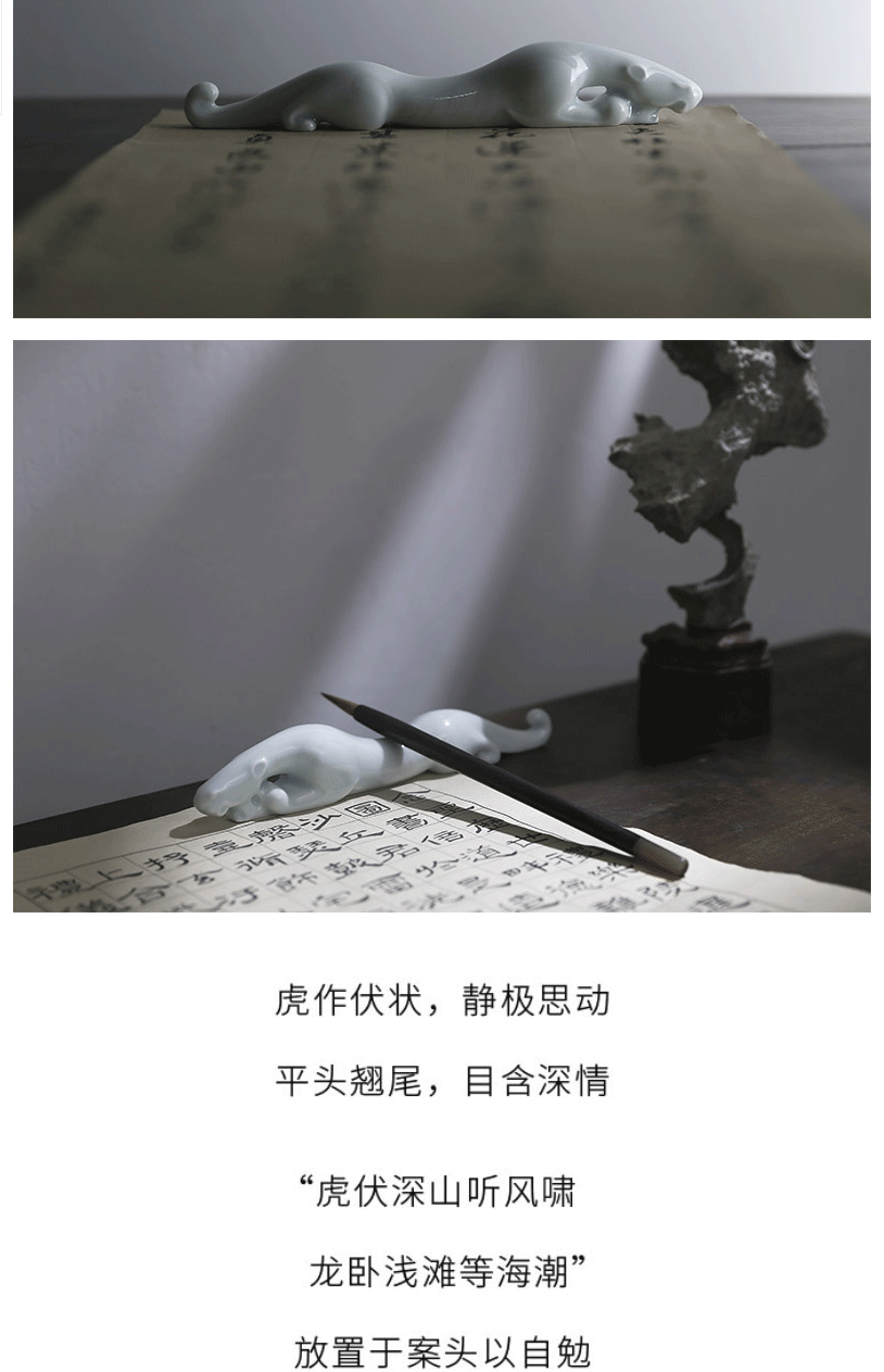 商品名称:西泠印社 陶瓷伏虎纸镇 笔山 笔架 笔搁