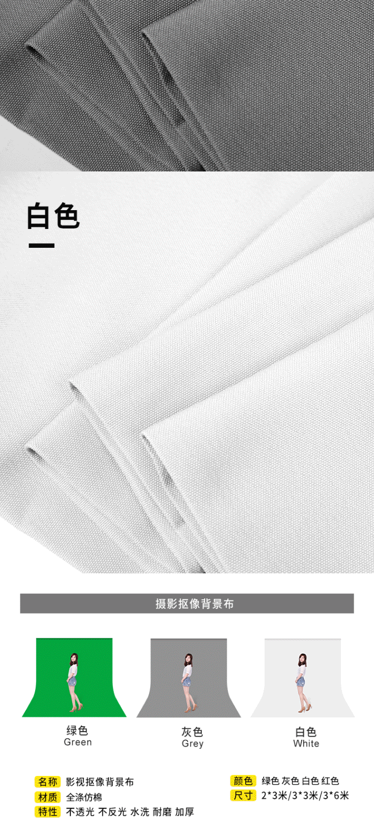 商品名称:视频抠像拍摄拍照背景布 摄影纯色背景 背景墙 3*6米白色(不含背景架)