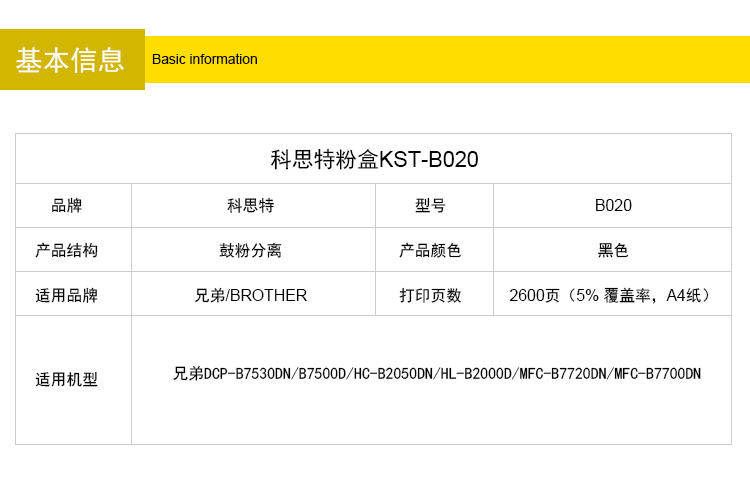 商品名称:科思特TNB020粉盒 适用兄弟打印机 DCP-B7530DN B7500D HC-B2050DN 专业版