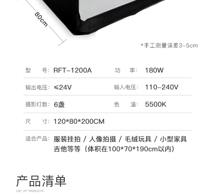 商品名称:LED200CM柜式摄影棚 简易摄影灯拍照道具 LED200CM摄影棚
