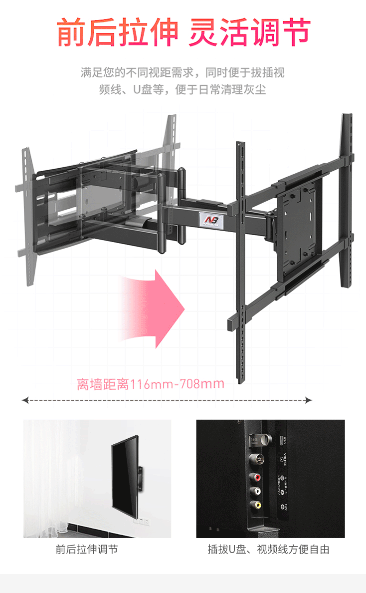 NB SP5(55-90英寸)旋转伸缩电视挂架 电视架 电视机长臂挂架 电视支架