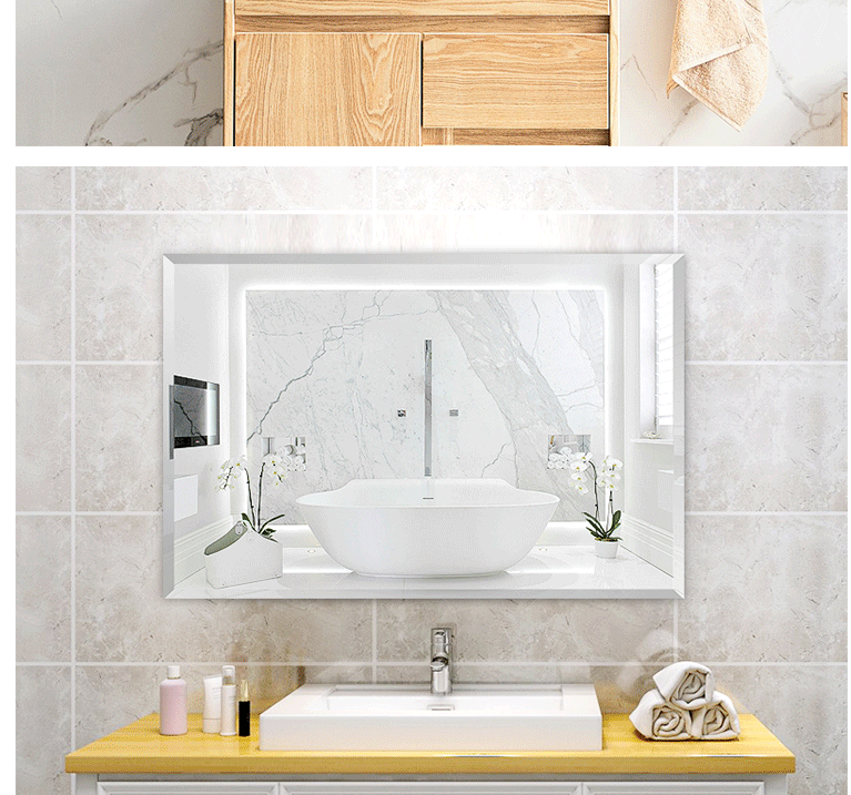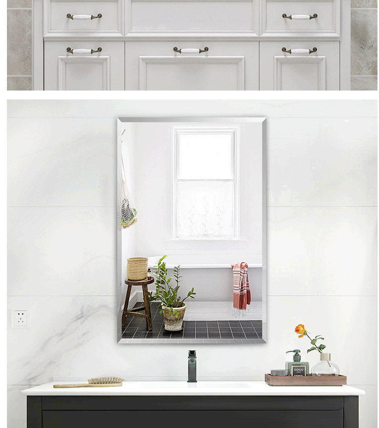 商品名称:浴室镜子免打孔 卫生间洗漱台镜子 化妆镜 直角40*60cm