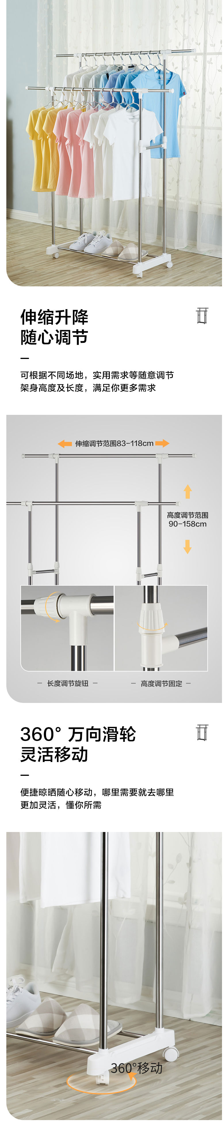 商品名称:高低杠晾衣架 不锈钢落地晾衣架 阳台伸缩晾衣架 晒衣架 挂衣架 晾晒架 晾衣杆
