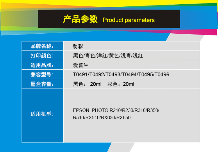 适用机型:EPSON PHOTO R210/R230/R310/R350/R510/RX510/RX630/RX650