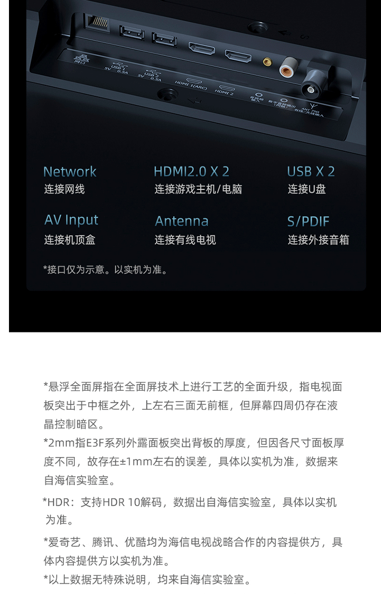 商品名称:海信(Hisense)60E3F 60英寸 4K超高清智慧语音 超薄悬浮全面屏彩电 电视机