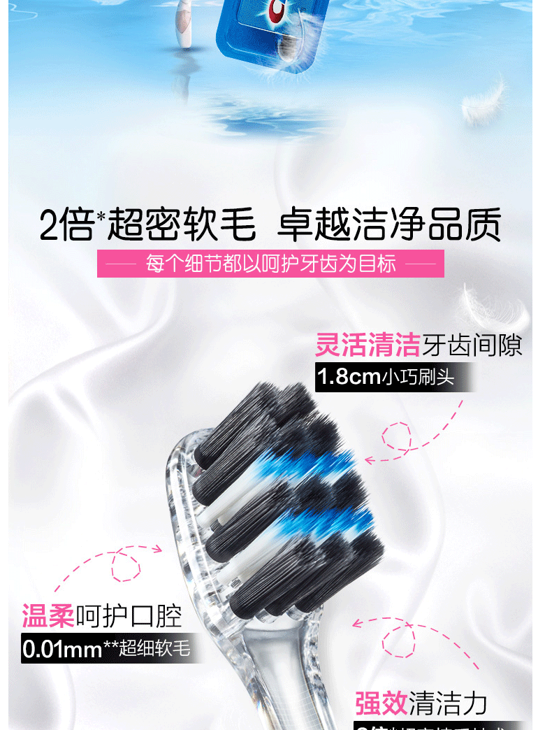 佳洁士牙刷软毛天鹅绒黑茶护龈超细软毛牙刷