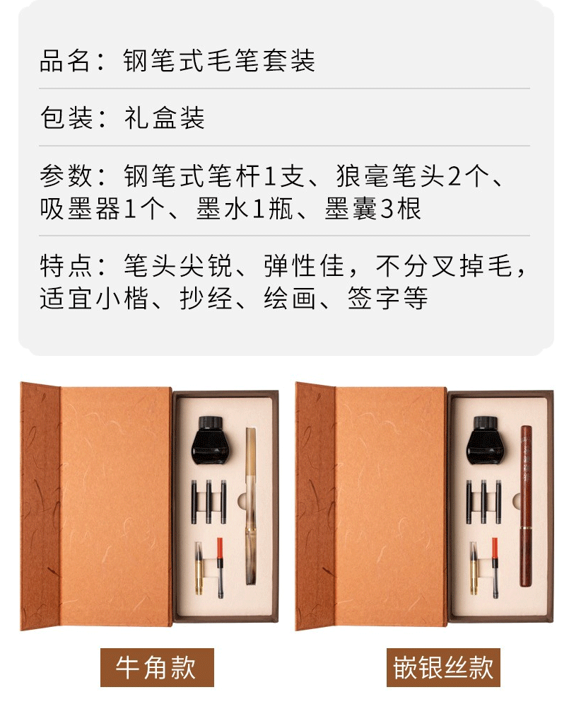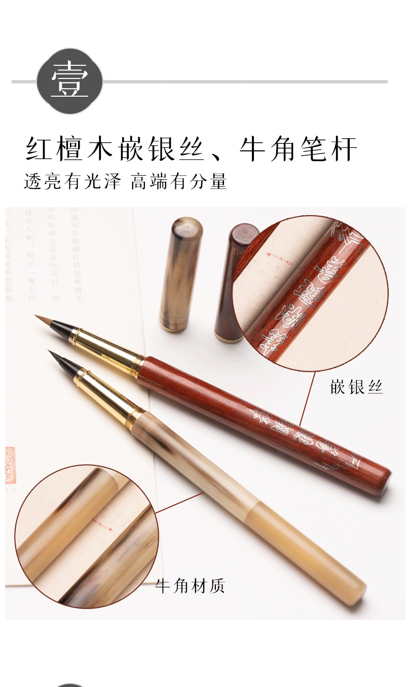 商品名称:钢笔式毛笔 牛角软笔套装 狼毫小楷中楷便携式毛笔 牛角钢笔式毛笔